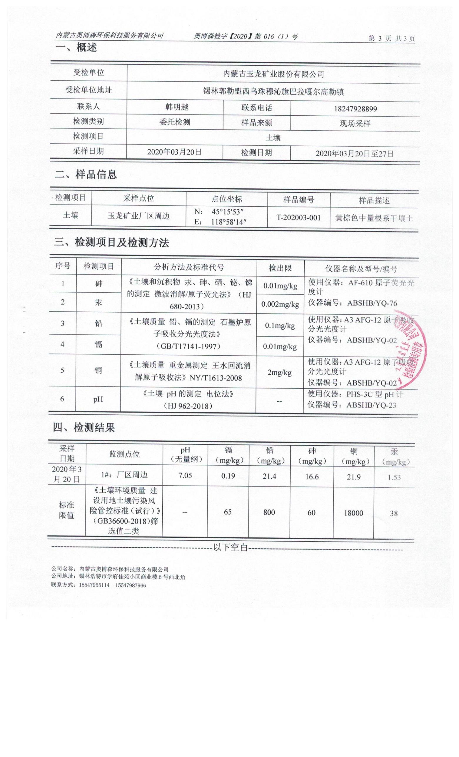 2020年3月份土壤检测报告