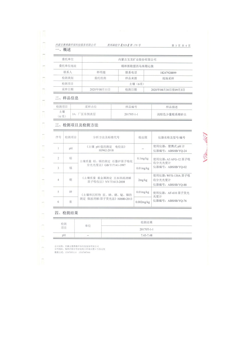 2020年9月份土壤检测报告