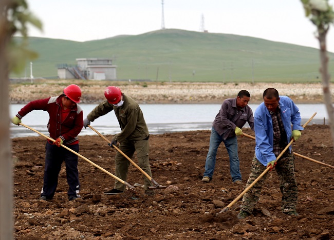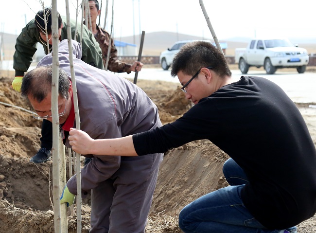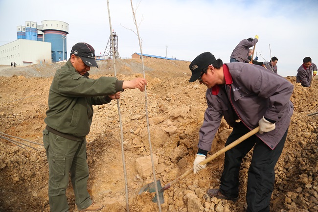 公司上下齐动员,全员参与到矿山的绿化美化,截止5月25日,参加人员累计达到1500人次,共种植杨树5100棵、丁香树900珠、松树600棵、种植苜蓿草籽646斤、沙打旺草籽578斤、油葵籽20斤、油菜花籽50斤,种植面积累计约160亩;动用钩机、铲车、洒水车、翻斗车、等工程机械847多台次,覆土方量34114.66立方米、倒运废石73188.7吨,硬化路面2000平方米。